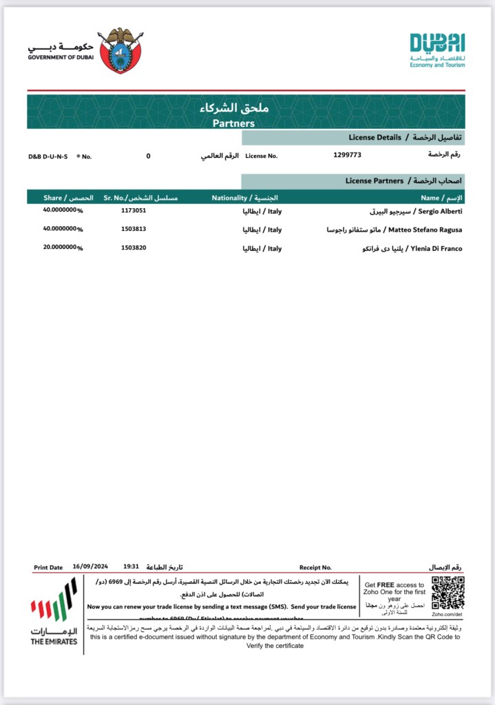 Il documento fornito parla chiaro: Matteo Stefano Ragusa possiede una semplice carta di identità da residente, ottenuta come partner di un’azienda locale. Ora, tutti sappiamo che il Golden Visa è una sorta di biglietto da visita per gli imprenditori di successo negli Emirati. Ma, evidentemente, Matteo ha deciso di seguire un’altra strada, forse per coerenza con il suo stile di gestione aziendale: molto fumo e pochissimo arrosto.